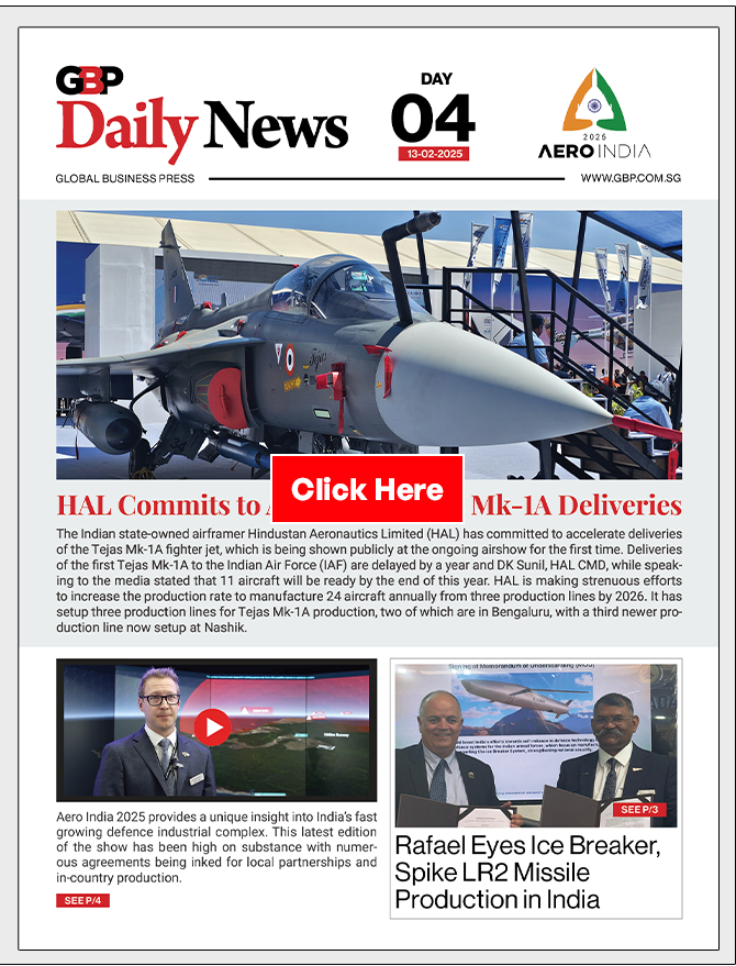 Headquartered in Singapore with reporters spread across all major regions, GBP Aerospace & Defence is a leading media house that publishes three publications that serve the aerospace and defence sector - Asian Defence Technology, Asian Airlines & Aerospace and Daily News. Known industry-wide for quality journalism, GBP Aerospace & Defence is present at more international tradeshows and exhibitions than any other competing publication in the region.