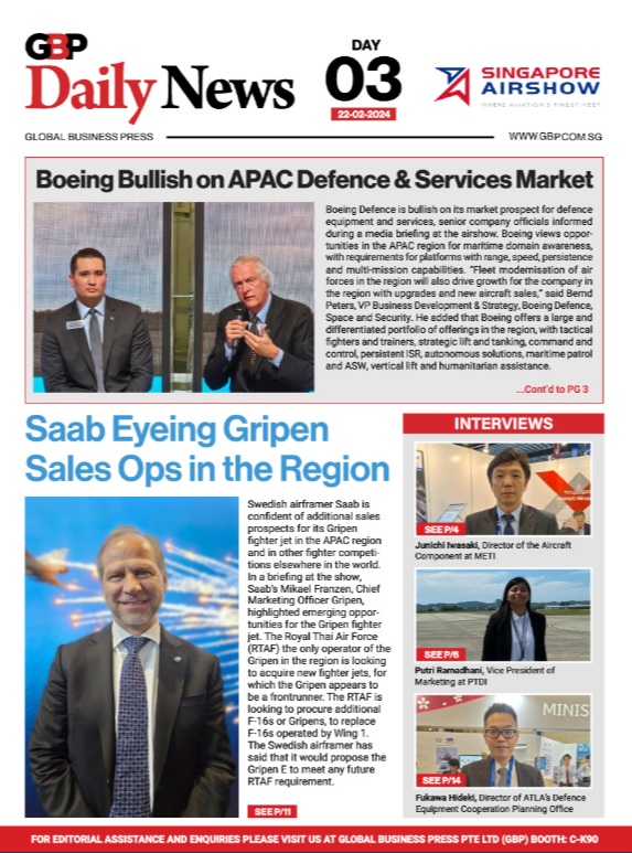 Headquartered in Singapore with reporters spread across all major regions, GBP Aerospace & Defence is a leading media house that publishes three publications that serve the aerospace and defence sector - Asian Defence Technology, Asian Airlines & Aerospace and Daily News. Known industry-wide for quality journalism, GBP Aerospace & Defence is present at more international tradeshows and exhibitions than any other competing publication in the region.