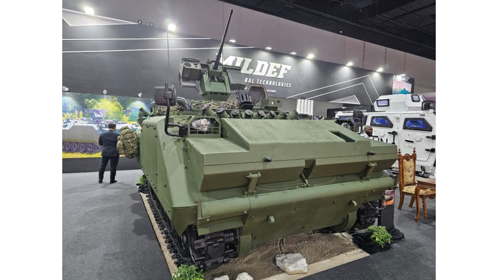 Malaysian firm MILDEF International Technologies unveiled its new Tarantula, 4x4 High Mobility Armoured Vehicle (HMAV) at the ongoing DSA. Also showcased was MILDEF’s M113 Modernization effort which sees the Infantry Fighting Vehicle (IFV) fitted with a Remote-Controlled Weapon System (RCWS). The modernized M113 is protected against small arms fire to STANAG 4569 Level 2 and mine blast protection to STANAG 4569 Level 2B. The upgraded IFV features an embedded GPS, VHF and HF radios, 3 wireless active intercoms, noise reduction features and a Battlefield Management System (BMS).